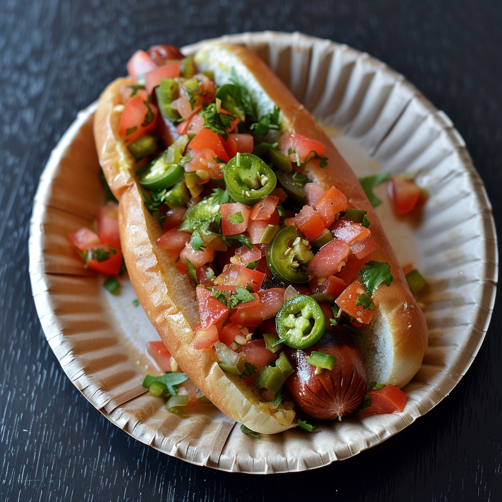 Hot Link, Jalapeño & Sriracha Mayo! Topped with Fresh Tomatoes to tame da heat