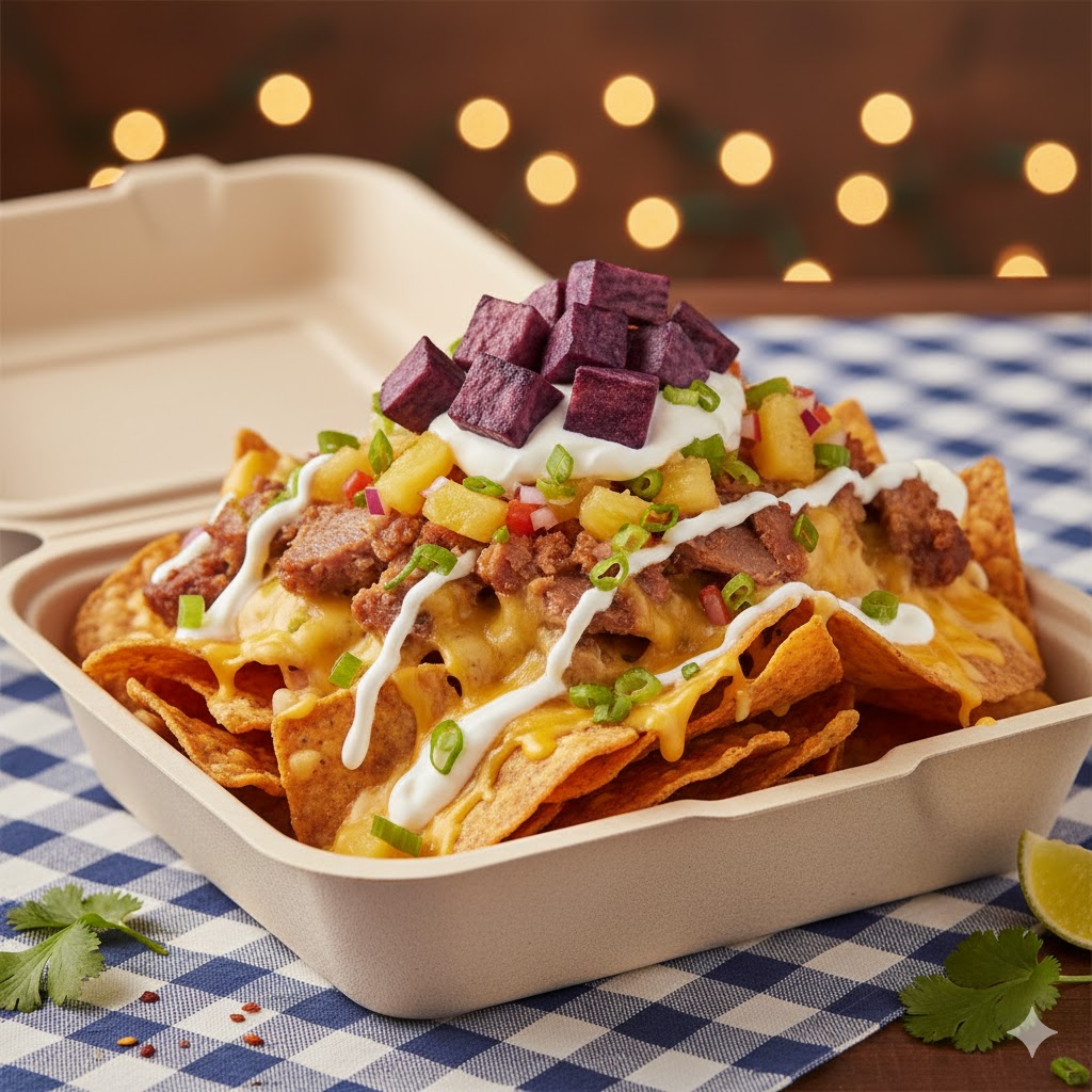 Nachos and choice of Laulau, Kalua Pig, Combo Laulau & Kaulua, Combo Lomi Ahi & Kalua Pig